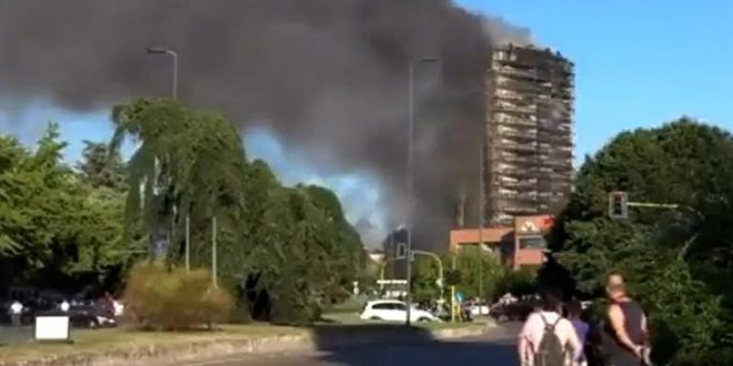 اندلع حريق هائل في مبنى سكني مؤلف من 20 طابقاً في مقاطعة لومبارديا في مدينة ميلانو شمال إيطاليا دون وقوع ضحايا .