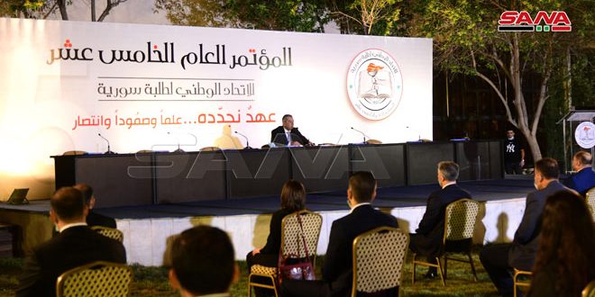 تحت عنوان “عهد نجدده علماً وصموداً وانتصاراً” انطلقت اليوم في مجمع صحارى بريف دمشق أعمال المؤتمر العام الخامس عشر للاتحاد الوطني لطلبة سورية.