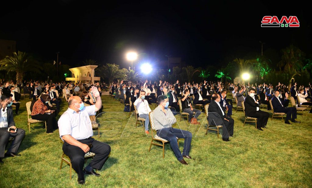 واستنكر الدكتور ساعاتي الإجراءات الاقتصادية القسرية أحادية الجانب المفروضة على الشعب السوري مؤكداً أن أعداء سورية يحاولون اليوم خنقها بالاقتصاد وأن ما تمر به هذه الأيام من خنق اقتصادي ما هو إلا حلقة جديدة قديمة في الحرب عليها لكن.. “كما ثبتنا جميعاً سابقاً سنثبت اليوم وكما بقينا هنا سنبقى هنا نمارس حقنا في الدفاع عن أنفسنا وعن حقوقنا وعن دستورنا وعن وجودنا.. مستمرون رغم الصعاب ننظر إلى الأمام خلف قائد عظيم ثبت وقاوم واستبسل في الدفاع عن بلاده فكانت معه كما كان لها”.