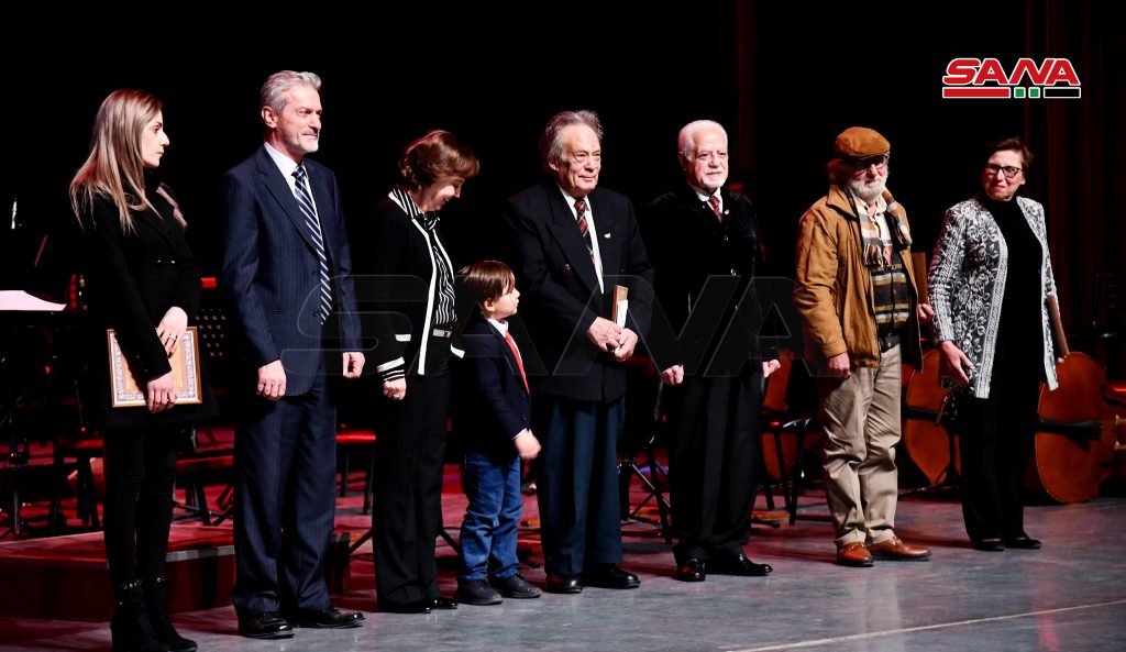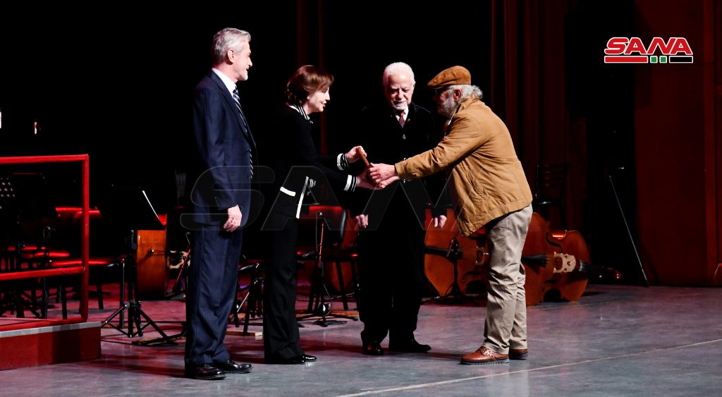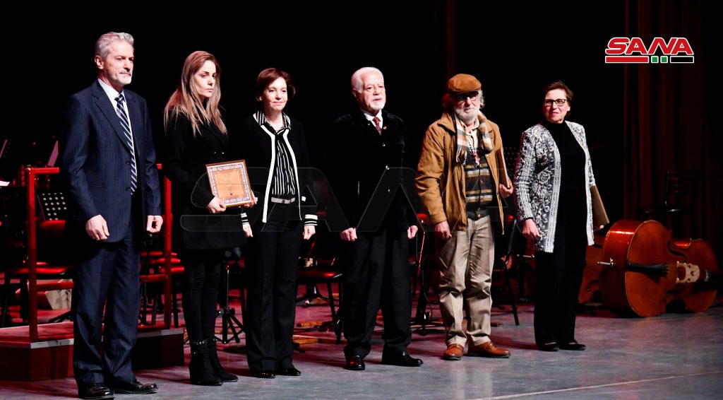 وتم خلال الحفل توزيع شهادات تقدير لذوي الفنانين الراحلين وللمكرمين الثلاثة من قبل وزير الثقافة ورئيس اتحاد التشكيليين السوريين محمد عرفان عزت أبو الشامات ومدير الفنون الجميلة في وزارة الثقافة عماد كسحوت.