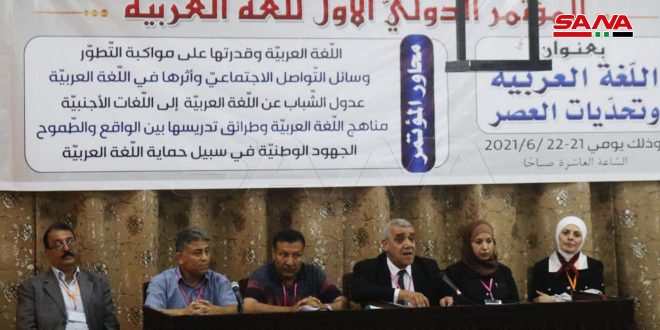 وبين المسعود أن المؤتمر يتضمن أربع جلسات بواقع جلستين كل يوم تتضمن خمسة محاور هي: اللغة العربية وقدرتها على مواكبة التطور ،وسائل التواصل الاجتماعي وأثرها في اللغة العربية،عدول الشباب عن اللغة العربية إلى اللغات الأجنبية، مناهج اللغة العربية وطرائق تدريسها بين الواقع والطموح، الجهود الوطنية في سبيل حماية اللغة العربية.