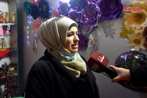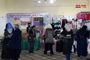 سوسن عباس (مشاركة ضمن جناح يضم كل ما يختص بالزينة وأعياد الميلاد والأفراح) أكدت الإقبال الواسع على المعرض كون الأسعار مخفضة فيما أوضح محسن العجي (مشارك من طرطوس) أن مشاركته تتضمن أنواعاً متعددة من السجاد.