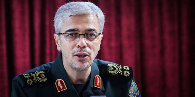 أكد رئيس الأركان العامة للقوات المسلحة الإيرانية اللواء محمد باقري أن إيران مستعدة للدفاع بقوة عن أمنها ومصالحها في الخليج لافتا إلى أن وجود القوى الأجنبية يشكل تحديا رئيسيا لأمن هذه المنطقة.