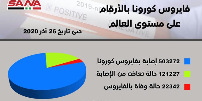 جنيف-سانا أعلنت منظمة الصحة العالمية أن عدد الإصابات بفيروس كورونا “كوفيد19”