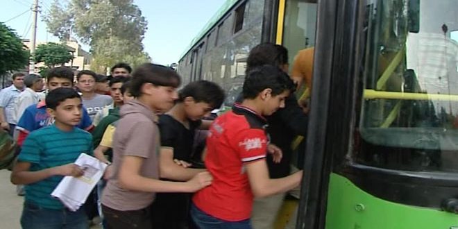 حرصا من الحكومة على توفير جميع الظروف اللازمة لمتابعة التحصيل الدراسي لجميع الطلاب تم اليوم بالتنسيق بين محافظة ريف دمشق ومديرية التربية ولجان المصالحة المحلية في مدينة معضمية الشام خروج 360 طالبا وطالبة من مدينة معضمية الشام بريف دمشق لتقديم امتحانات شهادة التعليم الأساسي.