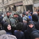 تواصل وحدات من الجيش العربي السوري تأمين الأهالي في منازلهم وإيصال المساعدات بالتعاون مع الهلال الأحمر العربي السوري إلى بلدة سقبا بعد تحريرها من الإرهاب.