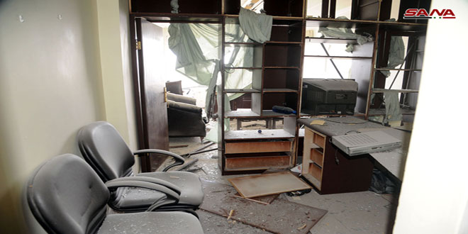 بالصور.. من الأضرار الناجمة عن الاعتداء الإرهابي بقذيفة على برج دمشق التجاري