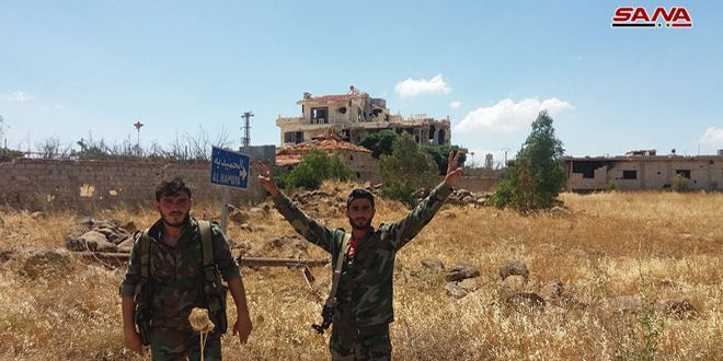 بالصور.. وحدات من الجيش العربي السوري تدخل إلى قرية الحميدية بعد إنهاء الوجود الإرهابي فيها 2018-07-26
