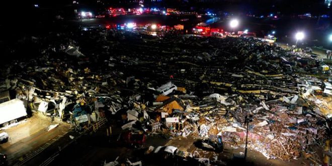 وقال حاكم ولاية كنتاكي اندي بيير في مؤتمر صحفي: إن الأعاصير تسببت بانهيار منازل ومصانع ومستودعات على طريق امتد لأكثر من مئتي ميل”.