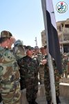 كما قام رئيس هيئة الأركان العامة للجيش بجولة في مدينة السخنة واطلع على حجم الدمار الذي خلفه تنظيم “داعش” الإرهابي في الممتلكات العامة والخاصة ورفع علم الجمهورية العربية السورية في الساحة العامة.
