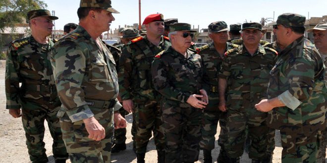 بتوجيه من السيد الرئيس الفريق بشار الأسد القائد العام للجيش والقوات المسلحة قام رئيس هيئة الأركان العامة للجيش العماد علي عبد الله أيوب بجولة ميدانية تفقد فيها وحدات الجيش العاملة في مدينة السخنة ومحيطها بريف حمص الشرقي.