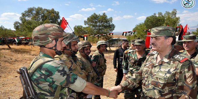واستمع الفريج من القادة الميدانيين “إلى شرح حول طبيعة المهام التي تنفذها الوحدات واطمأن على جاهزيتها وأثنى على الجهود التي يبذلها المقاتلون في مواجهة المجموعات الإرهابية المسلحة” مشيدا “بالروح المعنوية العالية التي يتمتعون بها” ومؤكدا “أن سورية ماضية شعبا وجيشا وقيادة بخطا واثقة في مواجهة الإرهاب حتى استئصاله من جذوره”.