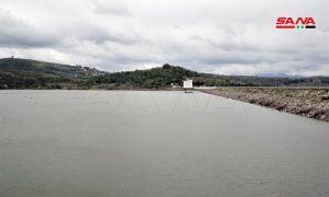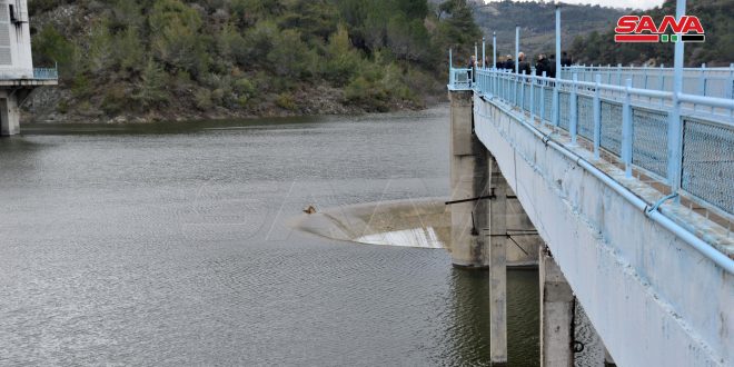 بحيرة سد 16 تشرين باللاذقية تصل إلى عتبة تخزينها الطبيعي وفتح مأخذ بوابة الري