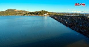 بحيرة سد 16 تشرين باللاذقية تصل إلى عتبة تخزينها الطبيعي وفتح مأخذ بوابة الري