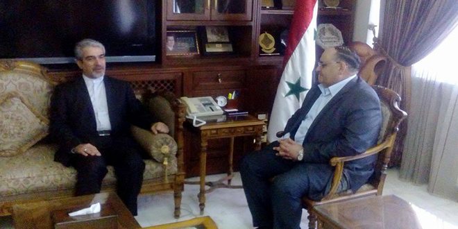 بحث وزير الزراعة والإصلاح الزراعي المهندس أحمد القادري مع سفير إيران بدمشق جواد تركابادي اليوم آفاق التعاون المشترك بين البلدين في المجالات الزراعية.