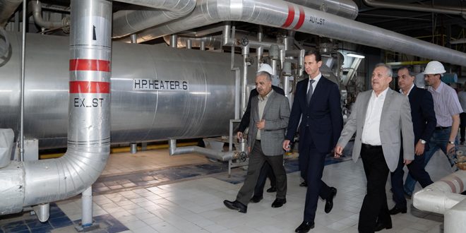 واليوم أيضاً كان السيد الرئيس بشار الأسد موجوداً في محطة حلب الحرارية بين الخبراء والعمال والفنيين ليشهد معهم إطلاق عمل المجموعة الخامسة من المحطة بعد إعادة تأهيلها والتي ستولد 200 ميغاواط لتغذية محافظة حلب بالطاقة الكهربائية.