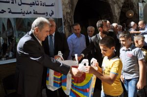 بدوره لفت وزير التجارة الداخلية وحماية المستهلك الدكتور عبدالله الغربي إلى أن بهجة الأعياد تعود إلى حمص من جديد معربا عن أمله أن يعم الأمان والاستقرار كل ربوع سورية الحبيبة داعيا بالرحمة لأرواح جميع الشهداء وبالشفاء العاجل للجرحى وبالنصر المؤزر للجيش العربي السوري الصامد في وجه الإرهاب.