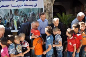 من جانبه أشار وزير الأشغال العامة والإسكان المهندس حسين عرنوس إلى أن اجتماع كل أطياف حمص في اليوم الأول من أيام عيد الأضحى دليل جديد على المحبة والألفة والفرح لدى أبناء المحافظة مبينا أن شعب سورية مصمم على إعادة بنائها بالمحبة والتعاون والتعاضد ليعيد إليها رونقها التاريخي الحضاري.