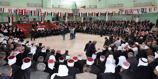 وشدد المشاركون على أن الشعب السوري سيفشل كل محاولات الأعداء لتفتيت نسيجه المجتمعي وسيبقى أسطورة في الصمود والتصدي إلى جانب جيشه وقيادته في مواجهة كل التحديات والمؤامرات التي تستهدف الوطن منوهين ببطولات وتضحيات الشهداء والانتصارات التي يحققها أبطال الجيش والقوات المسلحة على امتداد ساحات الوطن.