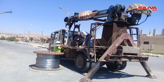 رئيس قسم كهرباء تدمر حمزة العبد الله أكد في تصريح لمراسل سانا “أن مشروع إعادة تأهيل خطوط التيار الكهربائي المنخفض يهدف إلى إعادة تغذية منازل المواطنين بالطاقة الكهربائية في إطار الجهود التي تبذلها الحكومة لإعادة الخدمات الأساسية للمدينة وفي ظل ازدياد أعداد العائدين إلى منازلهم بعد تطهير المدينة وباديتها من الإرهاب”.