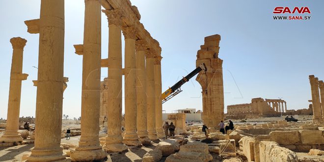 بدء أعمال ترميم قوس النصر الأثري في تدمر