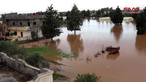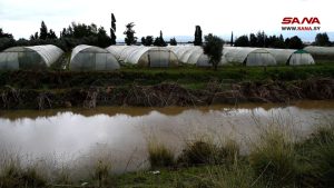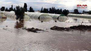 نائب رئيس المكتب التنفيذي للمحافظة حسان ناعوس أشار إلى أن الأمطار الغزيرة التي شهدتها المنطقة وأدت إلى ارتفاع منسوب المياه فيها تسببت بغمر الكثير من بيوت المنطقة والزراعات المحمية والأراضي الزراعية، موضحاً أن المحافظة تتابع أعمال الجهات المعنية بالاستجابة للكارثة، من الموارد المائية والهلال الأحمر العربي السوري، إضافة إلى متابعة إحصاء الأضرار وتسليك الممرات والعبارات النهرية الموجودة، لضمان عدم حدوث أي خطر وخاصة أن المنخفض الجوي لا يزال مستمراً والأمطار تتساقط.