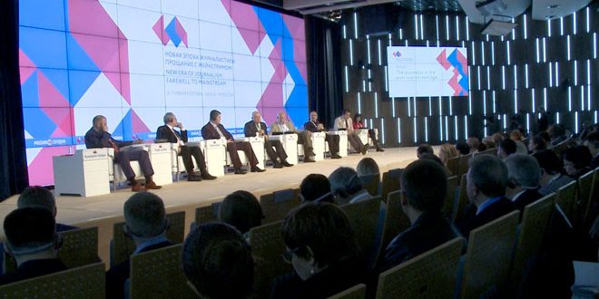 بدأت أعمال المنتدى الإعلامي الدولي بعنوان “عهد الصحافة الجديد.. وداعا للصحافة النمطية” اليوم في موسكو بمشاركة الوكالة العربية السورية للانباء “سانا” وصحفيين يمثلون وسائل الاعلام من ثلاثين بلدا في العالم.
