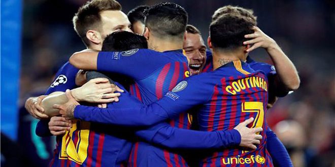 تأهل نادي برشلونة الإسباني إلى ربع نهائي دوري أبطال أوروبا بكرة القدم بعد فوزه الكبير اليوم على ليون الفرنسي بخمسة أهداف لهدف على ملعب نو كامب ببرشلونة في إياب دور الـ16.