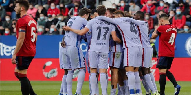 تعادل فريق برشلونة مع مضيفه أوساسونا بهدفين لكل منهما في المباراة التي جمعتهما اليوم ضمن منافسات الجولة السابعة عشرة في الدوري الإسباني لكرة القدم “الليغا”.