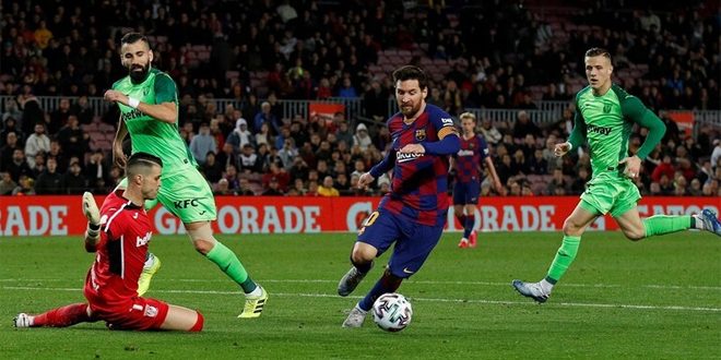 حقق برشلونة فوزاً كبيراً على ليغانيس بخمسة أهداف دون مقابل ليبلغ دور الثمانية في كأس ملك إسبانيا بكرة القدم اليوم.