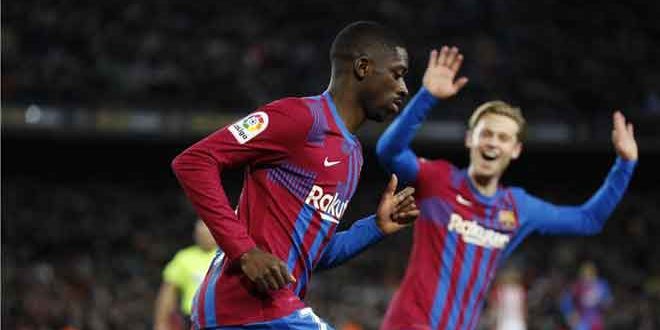 سجل أهداف برشلونة كل من بيير إيمريك أوباميانج وعثمان ديمبلي ولوك دي يونج وممفيس ديباي في الدقائق37 و73 و90 و93 .