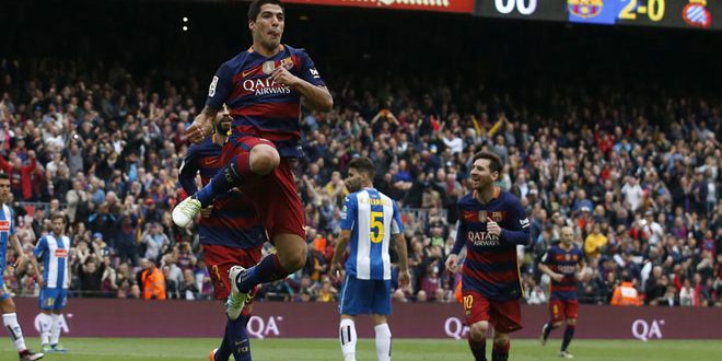 حقق برشلونة فوزا كبيرا على جاره إسبانيول 5-صفر اليوم في الجولة قبل الأخيرة لدوري الدرجة الأولى الإسباني لكرة القدم ليصبح على أعتاب الاحتفاظ باللقب بينما خرج أتلتيكو مدريد من سباق المنافسة على اللقب بخسارته 1-2 أمام ليفانتي فيما فاز ريا ل مدريد على بلنسية 3-2.