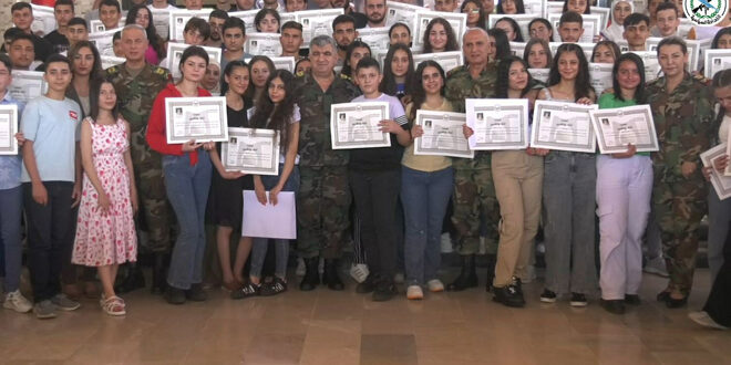 برعاية السيد الرئيس الفريق بشار الأسد القائد العام للجيش والقوات المسلحة أقامت مديرية شؤون الشهداء والجرحى والمفقودين بالتعاون مع الإدارة السياسية حفلاً تكريمياً في دار الأسد للثقافة والفنون للطلبة المتفوقين في شهادتي التعليم الأساسي والثانوية العامة لعام 2024 من أبناء الشهداء وجرحى العجز التام، وناب عن الرئيس الأسد في رعاية الحفل العماد علي محمود عباس نائب القائد العام للجيش والقوات المسلحة وزير الدفاع.