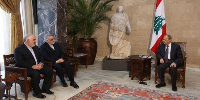 وبحث عون مع بروجردي الأوضاع في لبنان وسورية والمنطقة وتطوير العلاقات الثنائية بين البلدين.