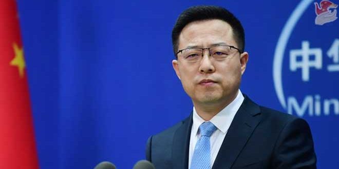 ونقلت وكالة شينخوا عن المتحدث باسم وزارة الخارجية الصينية تشاو ليجيان قوله في مؤتمر صحفي اليوم: إن الصين تسعى إلى التنمية من أجل توفير حياة أفضل لشعبها دون أي مصلحة او استبدال للآخرين مبيناً أنه ولفترة طويلة جداً كانت الولايات المتحدة تضخم نظرية التهديد الصيني وتلقي بأكاذيبها على الصين.