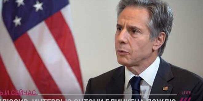 وقال بلينكن في مقابلة مع قناة دوجد التلفزيونية الروسية التي تبث عبر الإنترنت اليوم إن بايدن مستعد دائما للقاء إذا وجدنا أن ذلك سيكون مفيداً للدبلوماسية والسلام مشيراً إلى خطة للقاء نظيره الروسي سيرغي لافروف في الـ 24 من شباط الجاري.