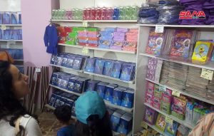 وخلال الافتتاح أشار “محمد عمران” مدير فرع السورية للتجارة إلى أن السوق يهدف إلى تأمين المستلزمات المدرسية من قرطاسية وغيرها إضافة إلى التسوق الخاص بالمؤونة حيث يضم تشكيلة من المواد الغذائية المتنوعة.