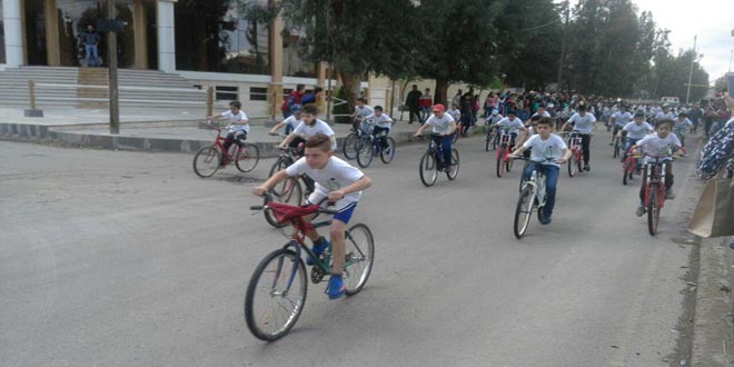 أقامت وزارة التربية بالتعاون مع اتحاد الدراجات اليوم مهرجانا رياضيا تحت شعار “دراجة هوائية.. بيئة نقية ….صحة قوية” شارك فيه نحو 600 تلميذ و تلميذة مثلوا 43 مدرسة في محافظة السويداء وذلك بمناسبة أعياد نيسان.
