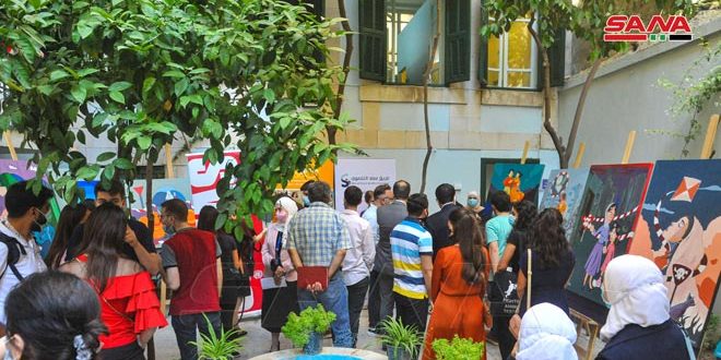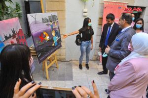 وتضمنت الفعالية التي أقيمت بدعم من صندوق الأمم المتحدة للسكان ودائرة الأمم المتحدة للأعمال المتعلقة بالألغام في سورية ومجلس الشباب السوري معرض فن تشكيلي ضم 15 لوحة فنية نتاج ورشة شارك بها 15 شاباً من خريجي وطلاب كليتي العمارة والفنون الجميلة بإشراف الفنان بشار شعبان حيث تحدثت اللوحات عن مخاطر الألغام والمتفجرات على حياة الأشخاص وأثرها السلبي على البيئة.
