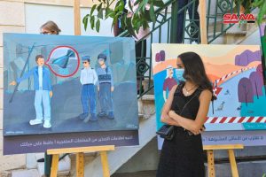 عدد من الفنانين المشاركين في المعرض أشاروا إلى دور الفن بنشر التوعية بمختلف القضايا الاجتماعية والإنسانية حيث بينت كل من ناديا صدقي وجودي شخاشيرو لـ سانا أن مشاركتهما بالمعرض هدفها تقديم رسالة توعية بالريشة واللون حول مخاطر الألغام والتنبيه من السلوكيات الخاطئة في التعامل معها وخاصة من قبل الأطفال.