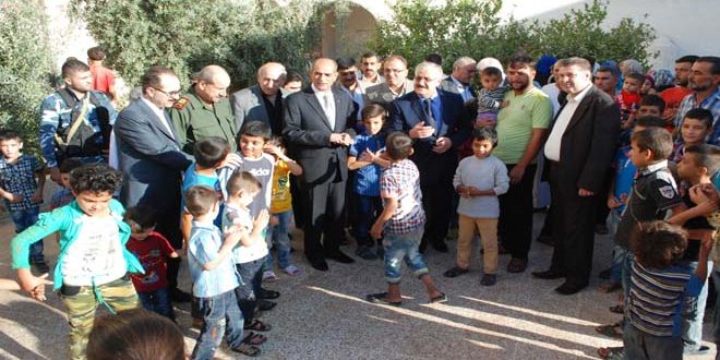 من جهة أخرى تفقد المحافظ يرافقه أمين فرع حزب البعث أوضاع الأسر المهجرة في مركز الإقامة المؤءقتة بمسجد عبد الرحمن بن عوف في حي القصور والذي يحوي نحو60 عائلة ومركزي الإقامة بمدرستي الشهيد محمد الأحمد ومعرشحور الجنوبية في بلدة معرشحور اللتين تقيم فيهما نحو 40 من الأسر المهجرة هربا من جرائم التنظيمات الارهابية.