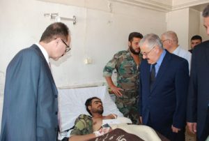 بدوره قال أمين فرع حماة لحزب البعث العربي الاشتراكي مصطفى سكري إن زيارة جرحى الجيش والاطمئنان عن وضعهم الصحي والعلاجي ومتابعة متطلباتهم وتقديم الدعم اللازم لهم هي عربون شكر لهم وتقدير لتضحياتهم في مواجهة الإرهاب التكفيري.