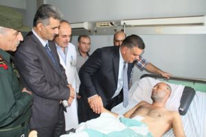 وخلال زيارتهما الجرحى الذين أصيبوا في التفجيرين الإرهابيين اللذين استهدفا ريف المحافظة في الخامس من الشهر الجاري في مشفى بالباسل بالمحافظة إطمأن المحافظ وأمين الفرع على الوضع الصحي للجرحى واطلعا على الخدمات الصحية المقدمة لهم وتوفر جميع الأدوية ومستلزمات العلاج الضرورية لهم.