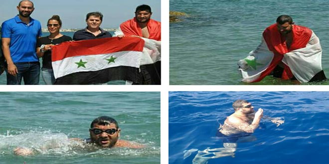 وانطلق السباح الجريح ضاهر من جبلة الساعة السادسة صباح أمس وقطع مسافة السباق البالغة 20 كم وصولاً لشاطئ الكورنيش الجنوبي باللاذقية بزمن قدره 8 ساعات و45 دقيقة.