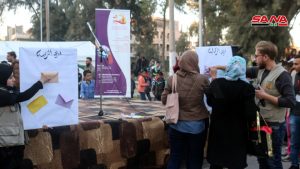 من جهتها اعربت الطفلة هيا حاج حسين عن سعادتها بالمشاركة كمقدمة للفقرات الامر الذي جعلها أكثر ثقة بالنفس ومكنها من التعبير عن شخصيتها بشكل مباشر أمام الحضور فيما اشارت الطفلة تمارا المحمد إلى أنها قدمت دورا مسرحيا يجسد حالة طفلة بترت يدها بسبب قذائف الإرهابيين واستطاعت من خلال هذا العمل ان تبث رسالة للعالم بأن أطفال سورية قادرون على تجاوز الصعاب والعيش بسلام رغم كل حقد الإرهاب.
