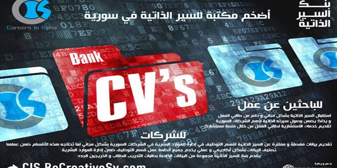 وأضاف: “إن خدمات المشروع مجانية وتعمل على توفير بيانات مفصلة عن السير الذاتية لطالبي العمل لقسم التوظيف في إدارة الموارد البشرية في الشركات السورية وفق ما تحتاجه هذه الأقسام ضمن عملها”.