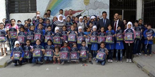 يؤكد الرئيس التنفيذي لبنك سورية الدولي الإسلامي عبد القادر الدويك أن “ألف حقيبة مدرسية مع قرطاسية” تم توزيعها على الطلاب والطالبات المحتاجين والمهجرين بفعل أعمال التنظيمات الإرهابية المسلحة في عدد من مدارس التعليم الأساسي الحلقة الأولى في منطقة القزاز بمحافظة ريف دمشق وذلك ضمن مبادرة البنك لدعم طلاب العلم والمعرفة في إطار مسؤوليته الإجتماعية تجاه أبناء المجتمع.