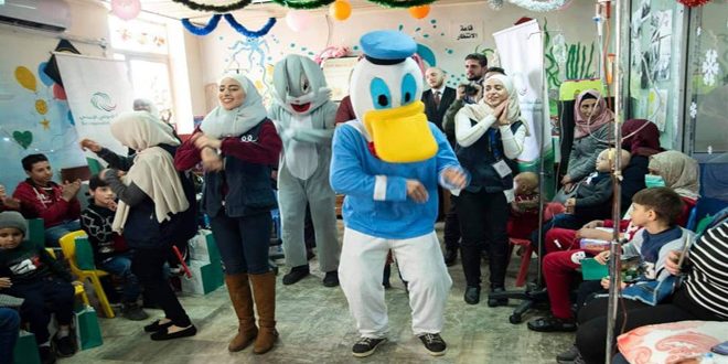 أقام بنك سورية الدولي الإسلامي الخميس الماضي بالتعاون مع جمعية “نور للإغاثة والتنمية” نشاطاً ترفيهياً لأطفال مرضى السرطان في مشفى البيروني وذلك بمناسبة اليوم العالمي لسرطان الأطفال.