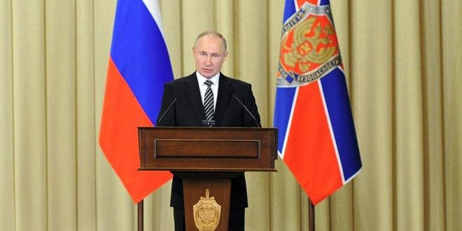 وأشار بوتين إلى أن مستوى التحديات العالمية مثل الإرهاب والجريمة العابرة للحدود والجرائم الالكترونية “لا يتناقص” مبيناً أن روسيا أحبطت خلال العام الماضي أنشطة 72 موظفاً حكومياً لحساب هيئات أمن أجنبية على الأراضي الروسية و423 من عملاء الاستخبارات الأجنبية.