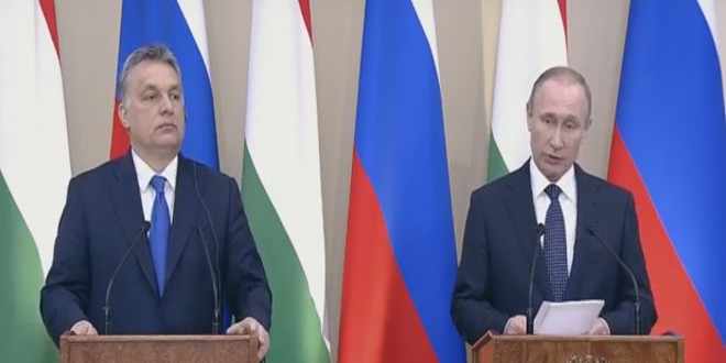 وأوضح الرئيس بوتين خلال مؤتمر صحفي مع رئيس وزراء هنغاريا فيكتور أربان في موسكو اليوم أن الجانبين الروسي والهنغاري تبادلا الآراء حول الأجندة الدولية بما فيها الوضع في الشرق الأوسط وشمال أفريقيا وأزمة الهجرة مشددا أنه لا بد من تسوية الأزمات في سورية وليبيا وغيرها من البلدان التي يضطر مواطنوها للنزوح والهجرة من بلادهم.